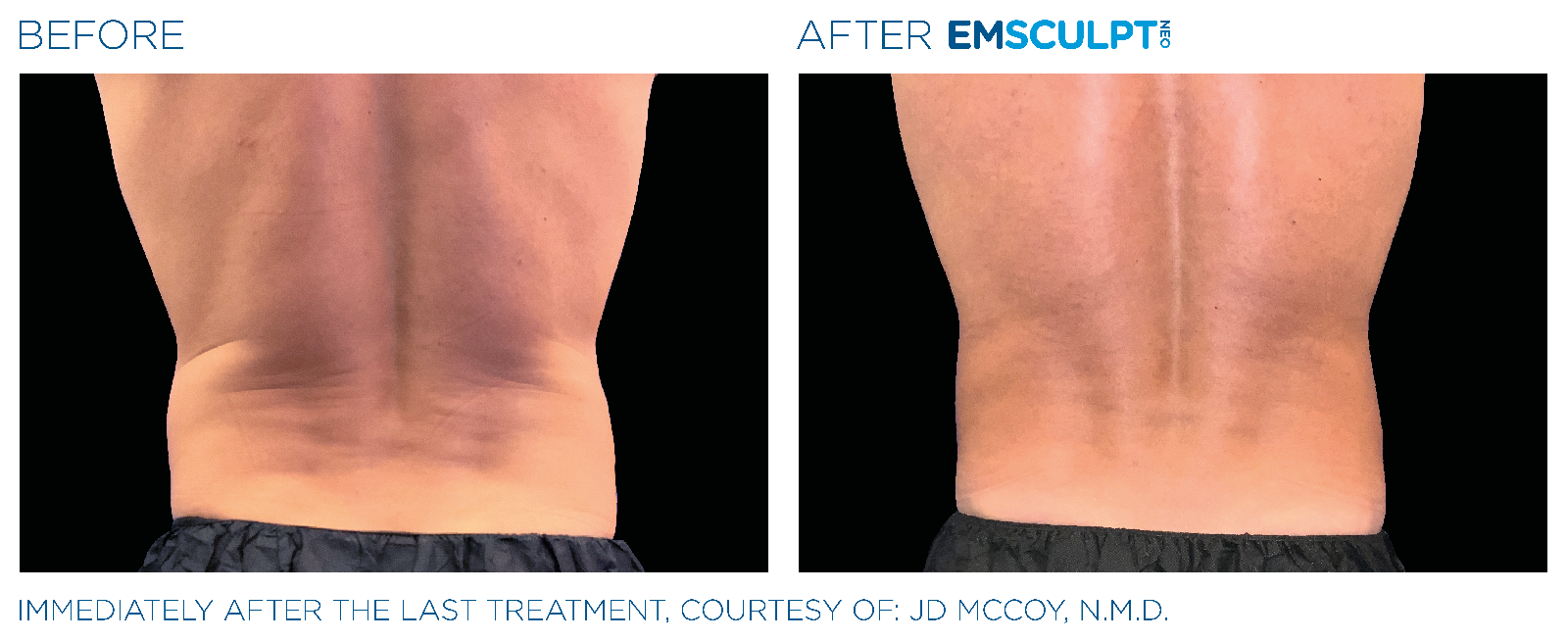Once the recommended number of treatments are performed, results from EMSCULPT NEO® are long-lasting, typically 6 to 12 months. Some patients choose to receive 1 to 2 maintenance treatments per year in addition to their normal health routine to stay toned.